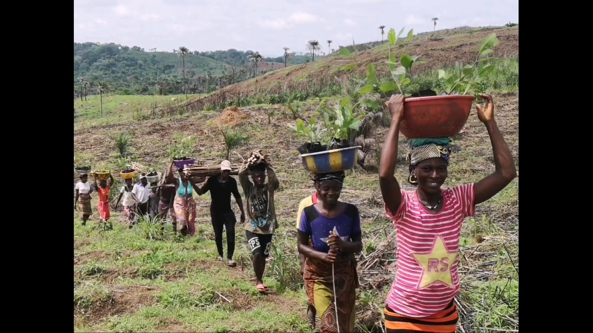 🙋🏿Die Frauen haben die Setzlinge von der Baumschule gebracht und wir haben an der am weitesten entfernten Grenze begonnen mit dem Pflanzen der Nahrungswälder.