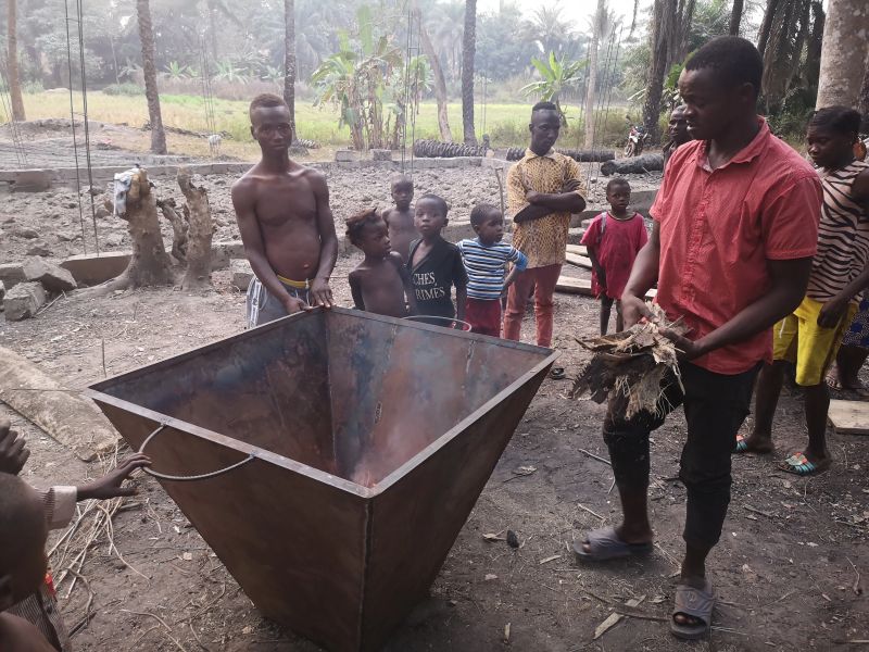 😎 Ein talentierter und erfahrener Schweißer aus dem nächsten Ort hat einen Kontiki Ofen gebaut, der zukünftig pro Tag 100 Kilogramm Kohle produzieren soll.