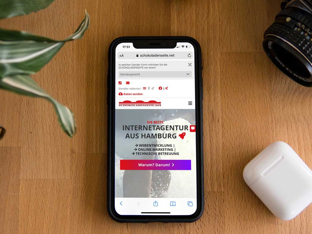 Kleine Ursache, große Wirkung: mit unserem neuen Tool können die Benutzer:innen der SCHOKOLADENSEITE.net selbst auswählen, in welcher Gender-Form ihnen die Texte angezeigt werden. Yay!